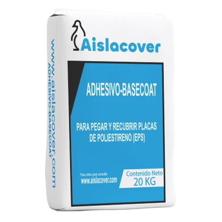Es un material en polvo diseñado a base de cemento, resinas poliméricas y aditivos químicos especializados tales como aditivos hidrófugos, que evita la penetración o absorción de agua. El ADHESIVO-BASECOAT AISLACOVER puede utilizarse como adhesivo y/o capa base en el recubrimiento de placas de poliestireno.
